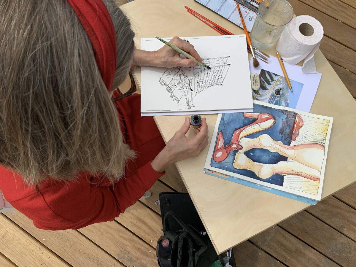 Liesbeth’s passion for drawing and painting started at the beginning of her architecture studies. According to her, anyone who chooses to study Architecture has the insight to create something with their hands, including herself. The form, however, varies: it can be painting, drawing or even model making. Architects or architecture students are more makers and creators than they are writers, she explains. When Liesbeth was a student, there were a lot of teachers and supervisors who were very good in the field of form studies. There, she learned how to draw, to watercolour, to take photos and videos. She feels blessed to have had these great teachers, since they initiated her passion for drawing by hand.