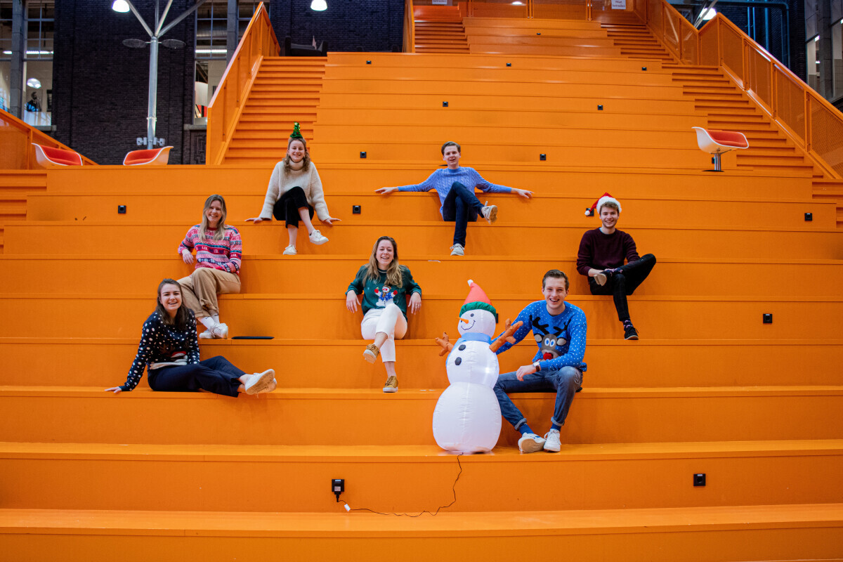 After a very difficult bike journey on my race bike, I arrived at our beautiful faculty. The front entrance was very quiet and everything was white. Finally inside all the quietness of the front square was gone, just like I had imagined. Students rushed by with their models, sketchbooks and posters. The dean and some professors were walking into the Berlage rooms. The bouwpub board walked past me with beer crates. A group of student rushed into the StylosHok, and at the same time two other members of the Stylos board walked the other way, their faced look very stressed. Just before stepping into the model hall I looked up towards one of the netpresenters. Now I got why they were in a rush. Today is the end of the year drinks.