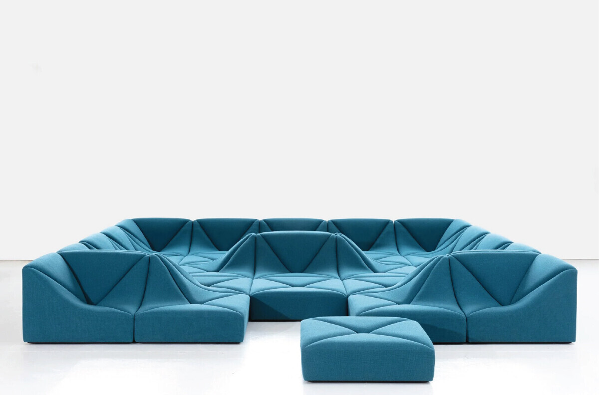 The Dune sofa is designed by the late designer Pierre Paulin. The sofa is experimental in its design and emulates the shape of dunes. The various modular parts can be arranged in different ways to accommodate the likings and needs of the user. To understand the philosophy behind this sofa, we need to take a look at Pierre Paulin’s general approach to design.