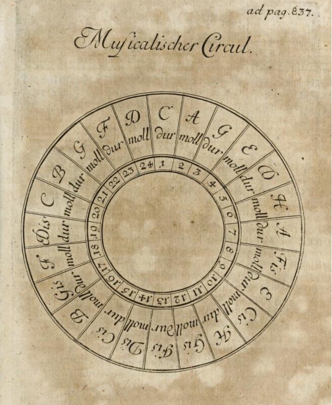 This is one of the earliest known illustrations of the circle of fifths. It comes from the book “Der General-Bass in der Composition” written by Johann David Heinichen in 1711. It is an older version of the circle of fifths we know nowadays. This diagram has become such a foundational part of music theory that it is everywhere.